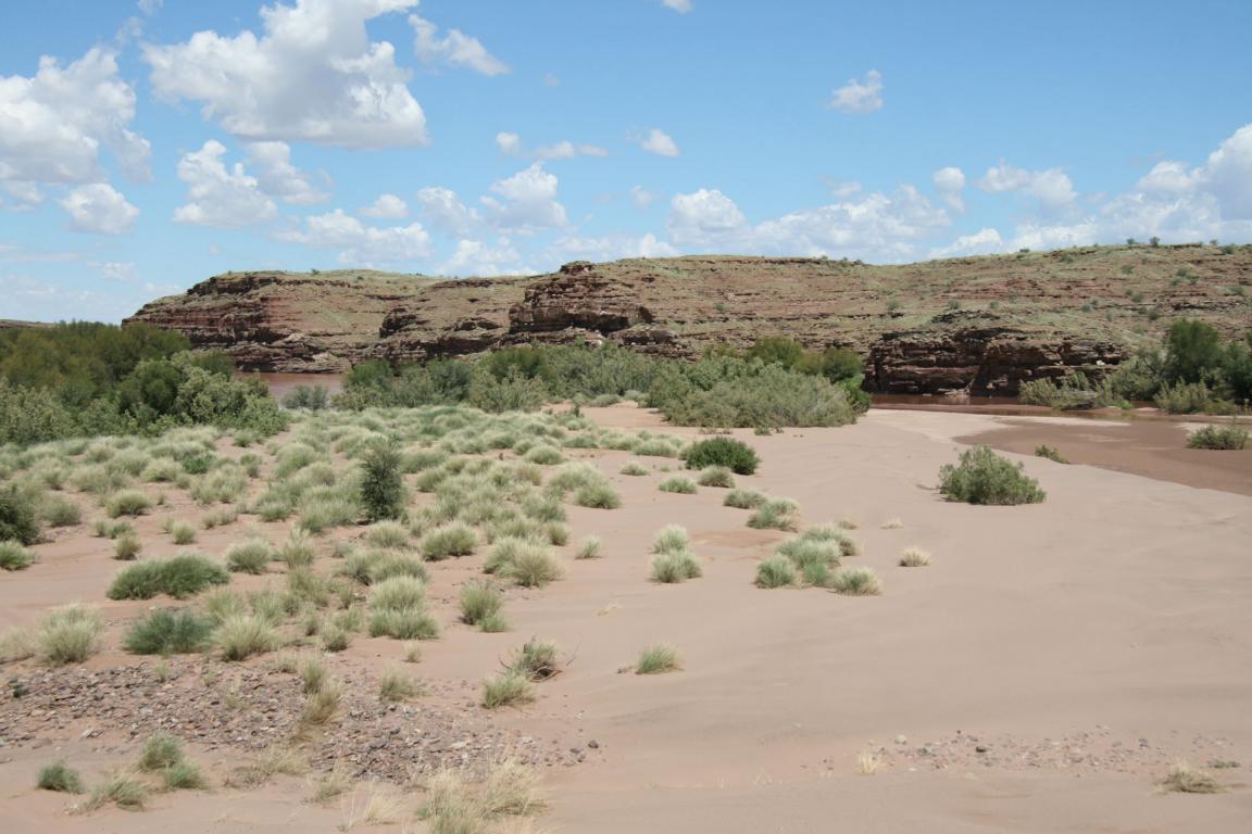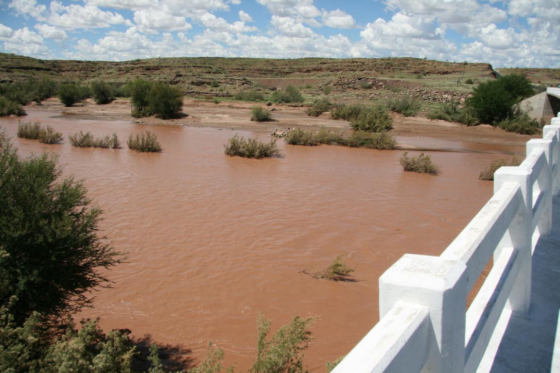 In Lüderitz haben wir von anderen Gästen den Hinweis bekommen, dass wir zu unserer nächsten Unterkunft über den Naute-Damm fahren sollen, da der lionriver ziemlich viel Wasser trägt und deshalb ein Teil der Straßen nicht passierbar ist. Ich meine jedenfalls, der Fluss hieß so.