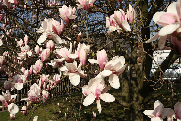 Unsere Magnolie ist schon über 30 Jahre alt. Erst nach 10 Jahren ist sie so ein stattlicher Baum geworden. Es gibt viele verschiedene Arten. Wunderschön...