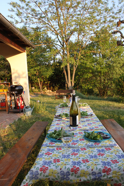Und zum Frühstück saßen wir schon wieder draußen, eine herrliche Gegend ist das hier...