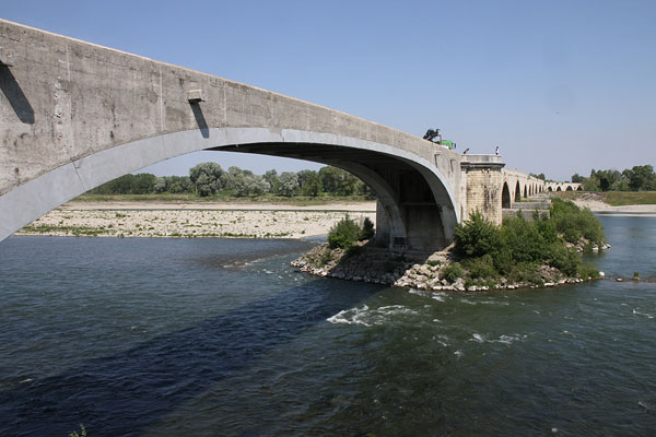 Steht man auf der Brücke, so kann man man den Zusammenfluss von der Ardèche und der Rhône sehen.