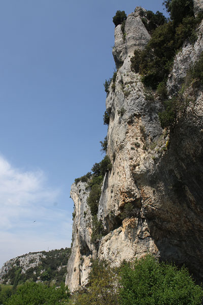 Über Barjac kommen wir nach Avejan und dann wird es kniffelig. Eine Straße ist gesperrt und wir irren auf Feldwegen umher. Die kleinen Sträßchen sind abenteuerlich und kaum zu glauben, dass sie befahrbar sind. Zwei Autos passen jedenfalls nicht nebeneinander.