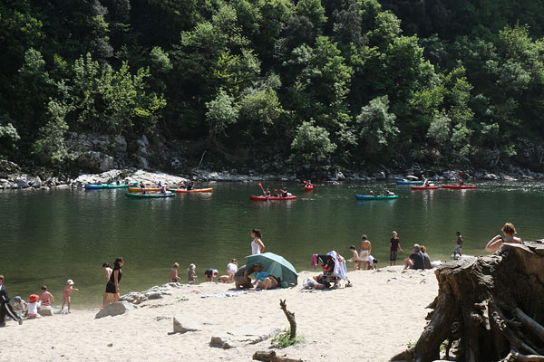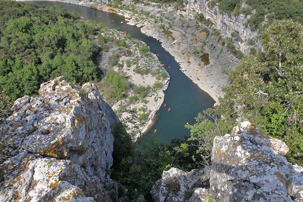 Auf einer Länge von 30 Kilometern hat sich die Ardèche einen Weg durch die Felsen gegraben. Hier kann man Wandern, Kajak fahren und natürlich auch baden.