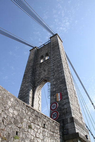 Wenn man über diese Hängebrücke fährt, eine Ampelanlage regelt den Verkehr, denn sie ist immer nur in einer Richtung befahrbar, dann erreicht man den mittelalterlichen Ort Aiguèze, der hoch auf einem Berg liegt.