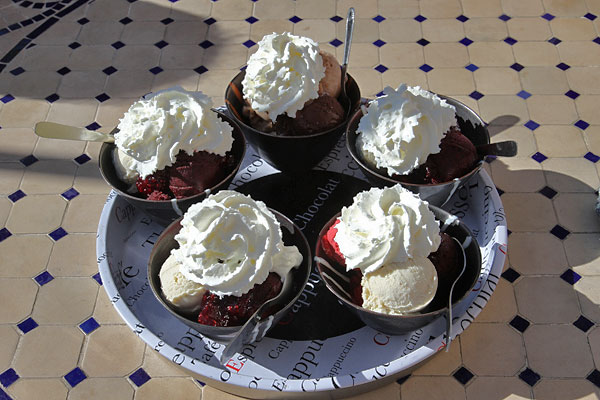 Dann kehren wir in ein kleines Café ein. Viel gibt es nicht, aber das Eis (Sorbet) wird hier selber gemacht und es schmeckt einfach köstlich.