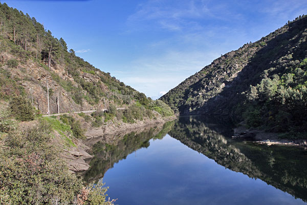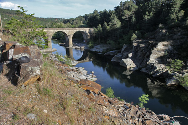 Rechts bzw.links sehen wir zunächst den Fluss Chassezac, der teilweise aufgetaut wird. Später fahren wir dann an der Thines entlang.