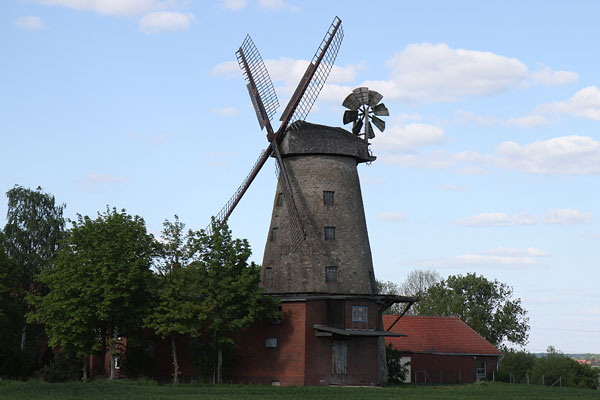 Bild 1 zeigt eine Galerieholländer-Turmwindmühle, die Pottmühle in Ovenstädt