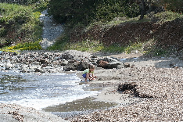 Na ja und unsere Enkeltochter hat natürlich schon am Strand gespielt und war auch einmal ganz kurz im Wasser...