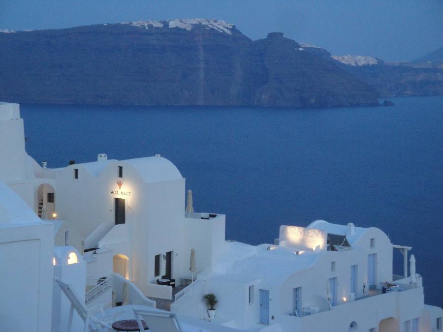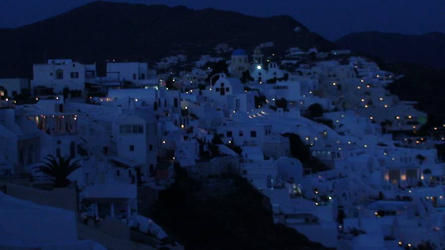 Auch danach, wenn langsam die Lichter im Ort Oia angehen, sieht es sehr nett aus und wir