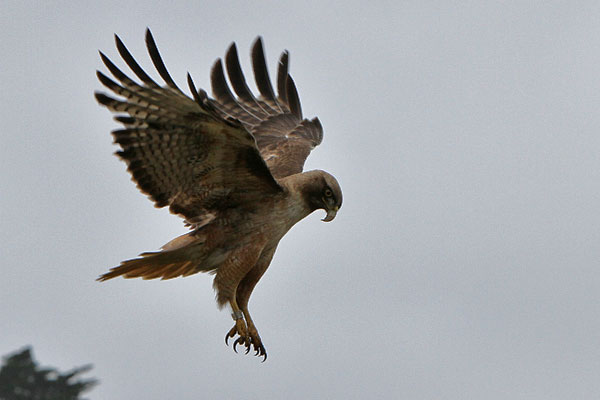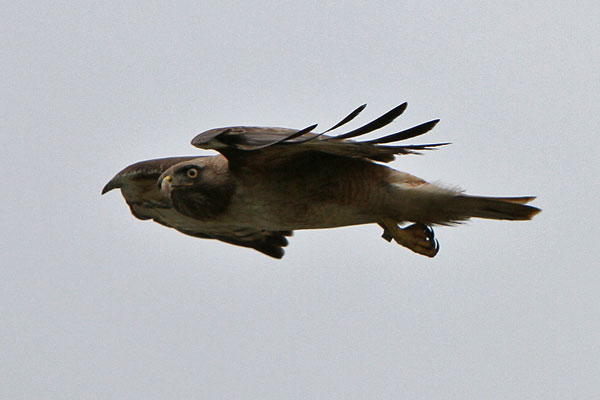 Über uns gleitet ein Habicht. Er befindet sich auf der Jagd. Ab und zu steht er über und und rüttelt, um dann pfeilschnell nach unten zu stoßen.