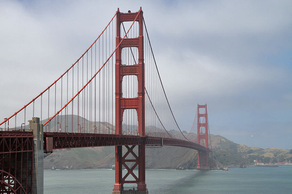 * Kabelgewicht: 21.770 tDie Golden Gate Bridge sieht immer noch aus wie neu, das liegt daran, dass mehr als 100 Menschen rund um das Jahr ausschließlich an der Hängebrücke arbeiten. Elektriker, Schlosser, Bauarbeiter kontrollieren Tag für Tag die Konstruktion. 25 Maler sind zuständig für das Aussehen. Jede Woche werden etwa 2000 Liter Farbe aufgetragen. Rotgolden ist die Brücke, weil sie mit dieser Farbe im Nebel am besten zu sehen ist.