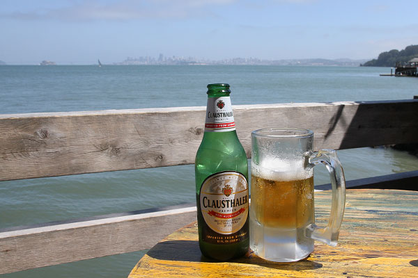 Wir setzen uns draußen in ein Café, hier haben wir auch schon 2008 mit Jenni gesessen und genießen den Blick auf San Francisco bei einem alkoholfreien Bier und einem leckeren Panini!