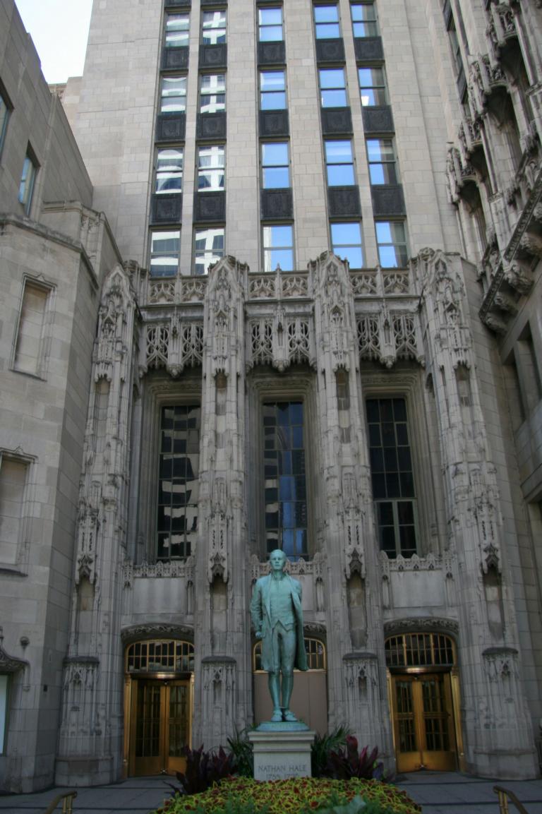 Wir kommen am Gebäude der Tribune (Zeitung) vorbei, vor dessen Eingang eine Figur von Nathan Hale steht- laut Wikipedial einer der "historischen Helden" der USA