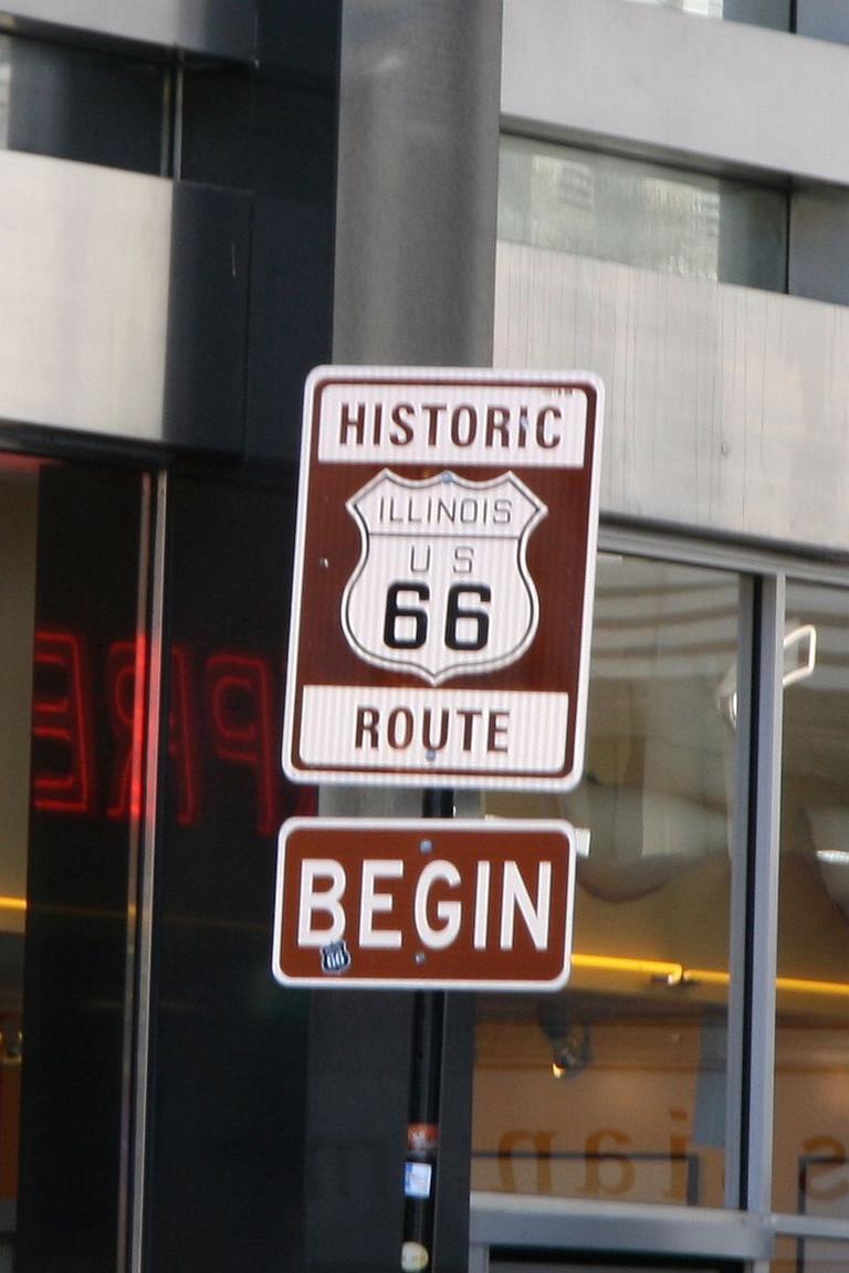 Hier beginnt die legendäre Route 66 - leider ist mein Foto ziemlich unscharf geworden, weil ich es auf die Schnelle aus dem Gehen heraus geschossen habe