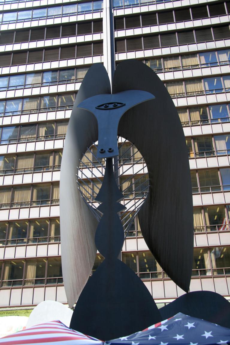 Auf dem 2. Bild kann man sie rechts im Hintergrund sehenUnd auf Bild 4 ist der Picasso auf der Daley Plaza. Einen Namen hat das Teil nicht