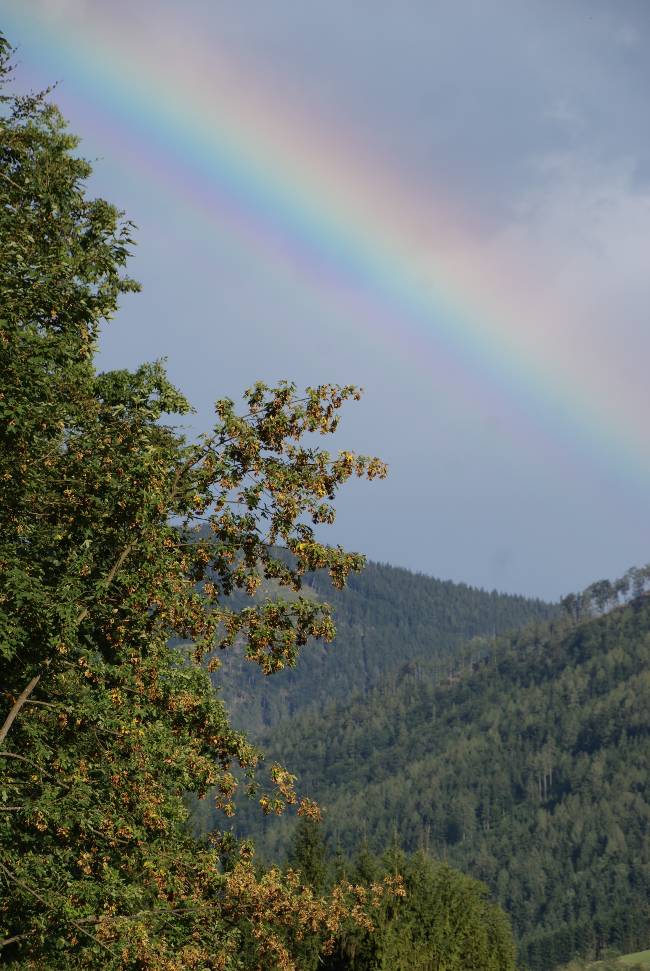 Abends um 18 Uhr war bei Sonnenschein Regen und da entstand ein Regenbogen, den ich euch auch nicht vorenthalten möchte.