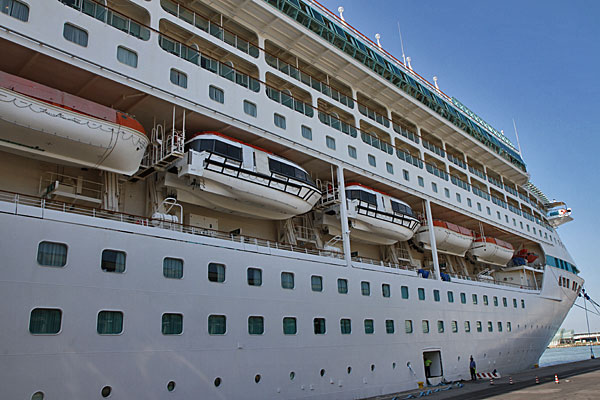 Gegen 15 Uhr nahmen wir den People-Mover, eine Schienenbahn, der uns für einen Euro zum Hafen brachte. Der Checkin verlief
