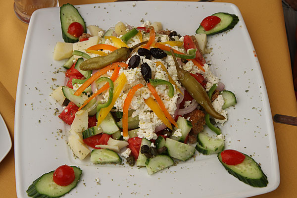 Von hier aus fahren wir nach Chania mit der schönen Altstadt. Wir verlassen die Reisegruppe und gehen auf eigene Faust weiter. Bei einem Alfa Bier kosten wir die kretische Küche mit einem authentischen kretischem Salat und Saganaki.