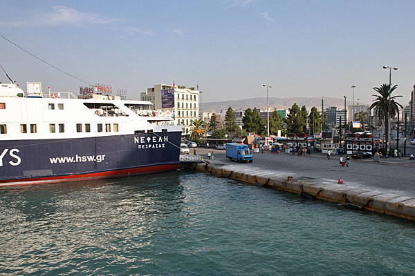 Um 9 Uhr legt die Alexandros von Piräus ab. Wir laufen ungefähr 20 Minuten dorthin. Als erstes wird der Hafen von Souvala
