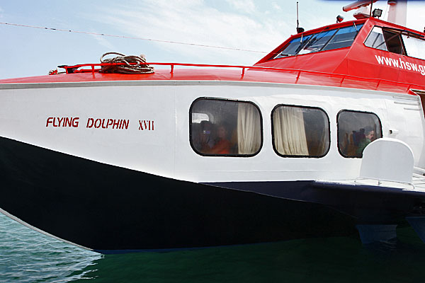 Unsere Zeit auf Ägina ist um. Wir nehmen um 14:10 Uhr den Flying Dolphin. Ein wenig sind wir nämlich in Sorge nicht