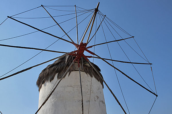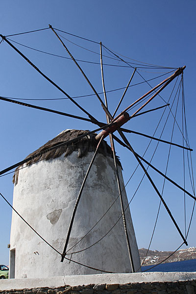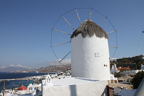 Von den einst 10 Windmühlen, stehen noch 5. Sie sind ein Wahrzeichen von Mykonos und ein Foto wert.
