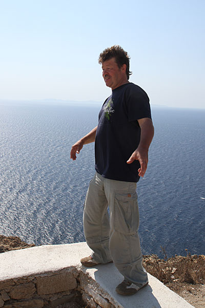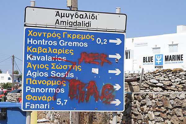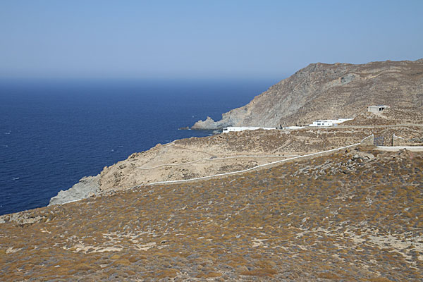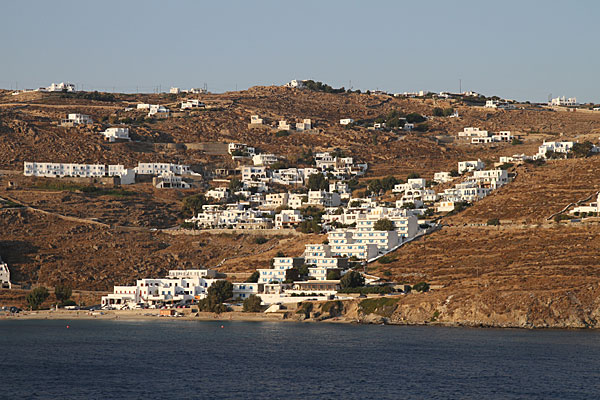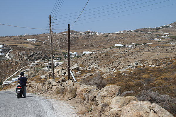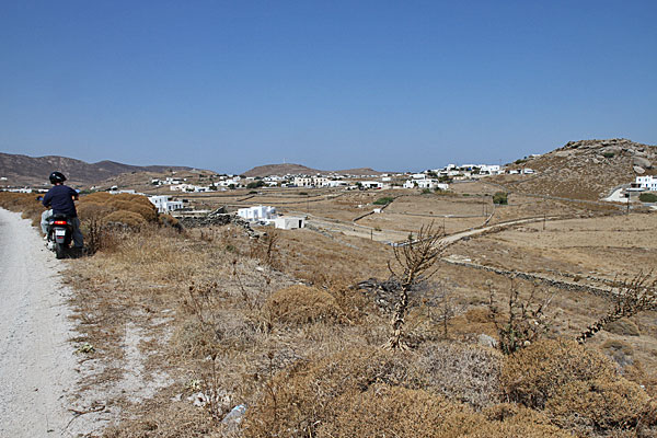 Unser nächstes Ziel war Kalo Livadi. Um dahin zu kommen, mussten wir allerdings über die Inselmitte, da. h. Ano Mera fahren. Hier verloren wir den Überblick, aber nette Griechen erklärten uns den Weg.