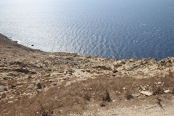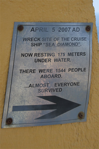 Immer wieder halten wir an und ich mache ein paar Fotos. Wir kommen auch an der Stelle vorbei, wo vor einigen Jahren (am 5. April 2007) die Sea Diamond auf Grund gelaufen ist. Was für eine Tragödie!