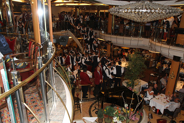 Bevor der Nachtisch gereicht wird, bringt uns die Besatzung noch ein Ständchen mit O sole mio!