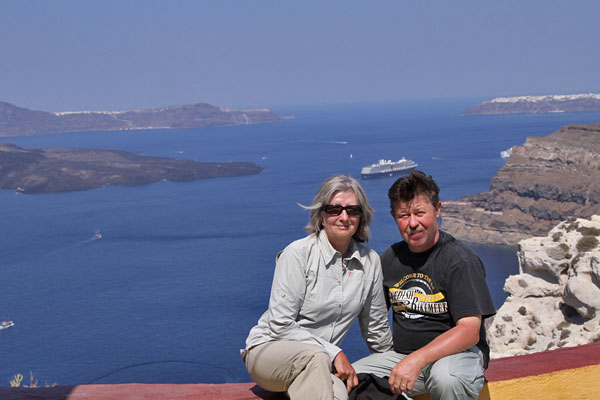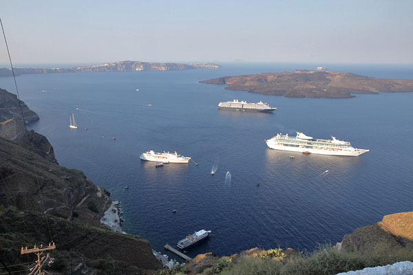 Am 8. Tag unserer Mittelmeerkreuzfahrt mit der Splendour of the Seas erreichen wir um 7 Uhr morgens Santorini, jenes Archipels im Ägäischen Meer, dessen Hauptinsel Thira sich wie ein Halbmond aus dem dunkelblauen Wasser erhebt.