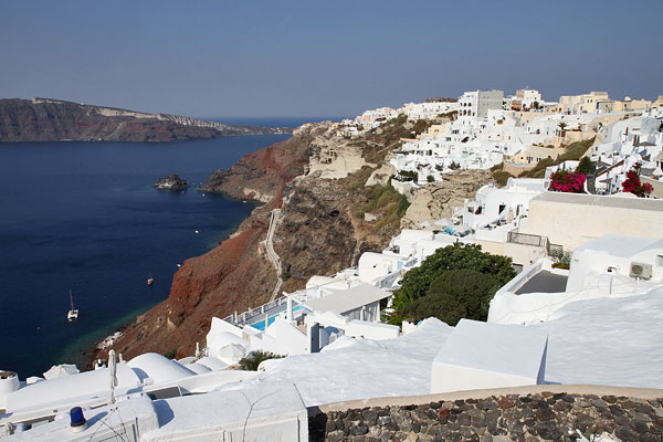Sprit hatten wir genügend im Tank drauf, also fuhren wir als erstes nach Oia. Den Weg kann man kaum verfehlen und die Insel ist ja wirklich nicht groß.