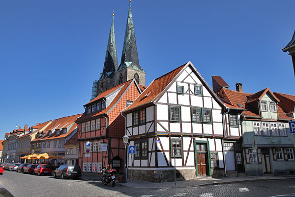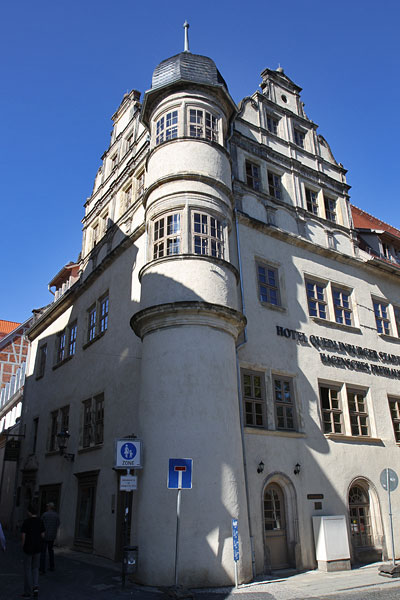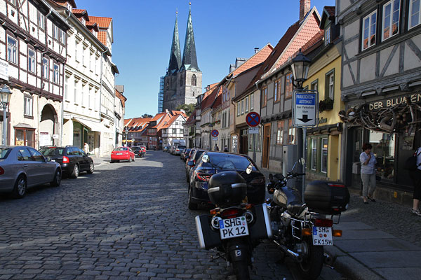 Endziel sollte Quedlinburg sein, eine Stadt in Sachsen Anhalt. Friedrich war hier schon einmal und war begeistert. Leider haben wir kein Hotel mehr bekommen, es war alles ausgebucht, egal, wo wir uns werkundigt haben. Dann holte Friedrich den Tourenfahrer raus und fand dort ein Biker-Hotel in Ballenstedt, nur wenige Kilometer von Quedlingburg entfernt.