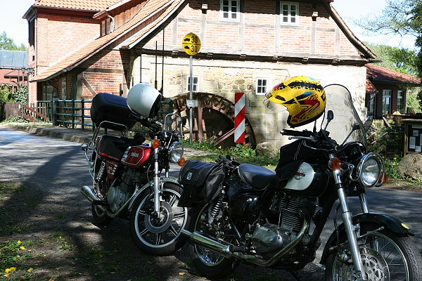 das Wetter versprach super zu werden, kein Regen und nicht zu heiß, also genau richtig für eine kleine Tages-Motorradtour. Genau 380 km sind wir gefahren. Gestartet in Nienstädt ging es über Lüdersfeld, Lindhorst, Auhagen, Hagenburg, dort trafen wir einen Fahrradfahrer, der seine Gruppe verloren hatte und den Weg zurück nach Hannover suchte. In dieser Gegend ist die Beschilderung nicht so toll