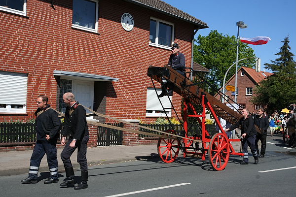 Am Bootsanleger machten wir Rast und Picknick auf der grünen Wiese. Danach suchten wir die Bockwindmühle auf dem Mühlenberg, sie stammt aus dem Jahre 1732 und war bis 1929 in Betrieb. Die Mühle ist begehbar und Teile des alten Mahlwerkes sind zu besichtigen. Heute war sie jedoch zu und wir fuhren weiter nach Bergen. In Bergen fand gerade ein großer Umzug statt und die Durchfahrt war gesperrt. Da stellten wir unsere Motorräder ab und schauten dem Umzug zu und machten einen Spaziergang durch die Ortschaft. Langsam wurde es Zeit, wir wollten ja noch nach Uelzen. So machten wir ab hier keine Stops mehr, obwohl ich mir gerne noch Hermannsburg angeschaut hätte. Von Herrmannsburg fuhren wir quer durch den Naturpark Südheide und fuhren die letzten Kilometer auf der Harz-Heide-Str. der B4 bis Uelzen.