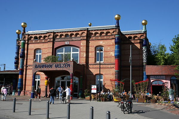 Der Bahnhof in Uelzen ist recht gut ausgeschildert, wir schafften es natürlich einmal drum herum zu fahren... Ja, der sieht wirklich gut aus. Wir haben uns im Bahnhof umgeschaut, dort einen Cappuccino getrunken, wirklich toll, was Hundertwasser so alles gemacht hat.