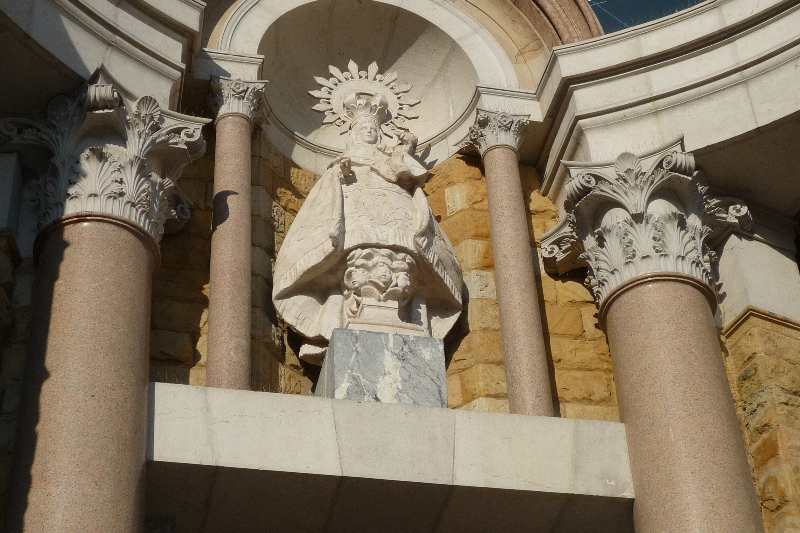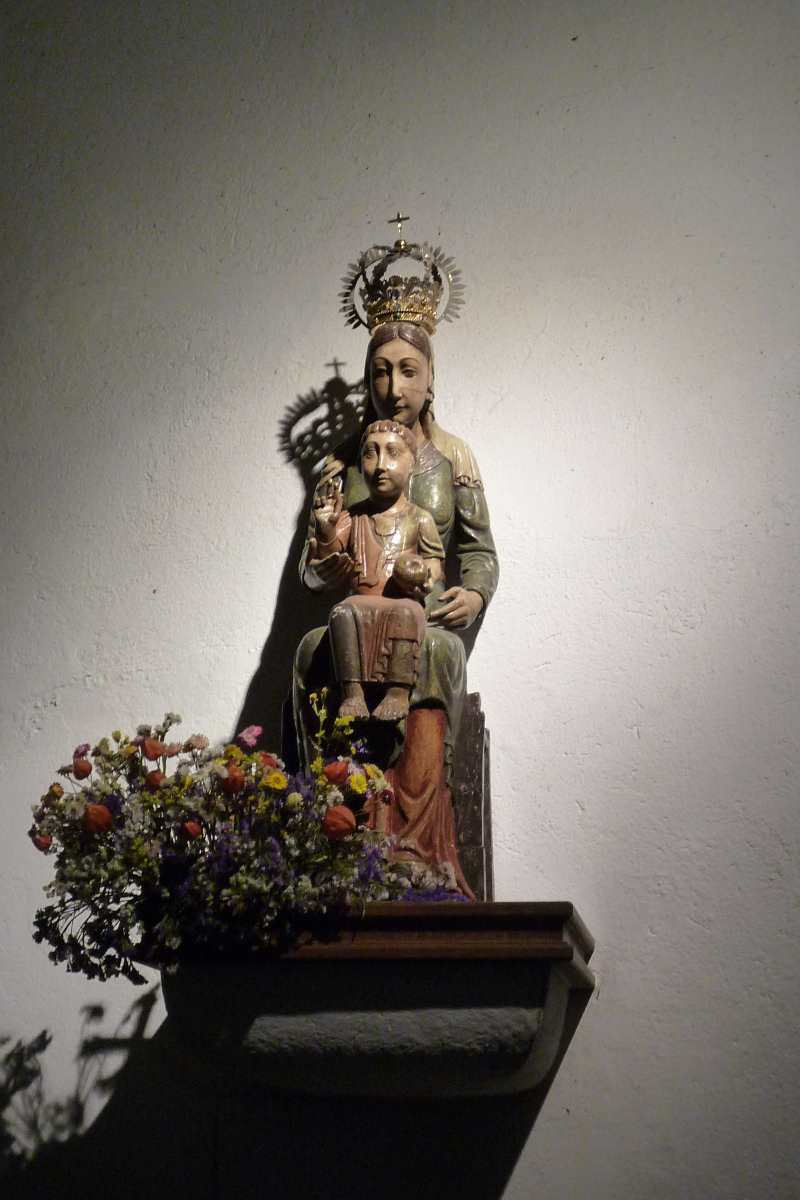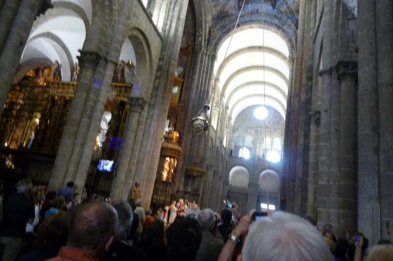 Pünktlich um 12.00 Uhr gibt es eine Pilgermesse. Die Kirche ist gerammelt voll. Mit Mühe und Not habe ich aber doch einen Platz gefunden.