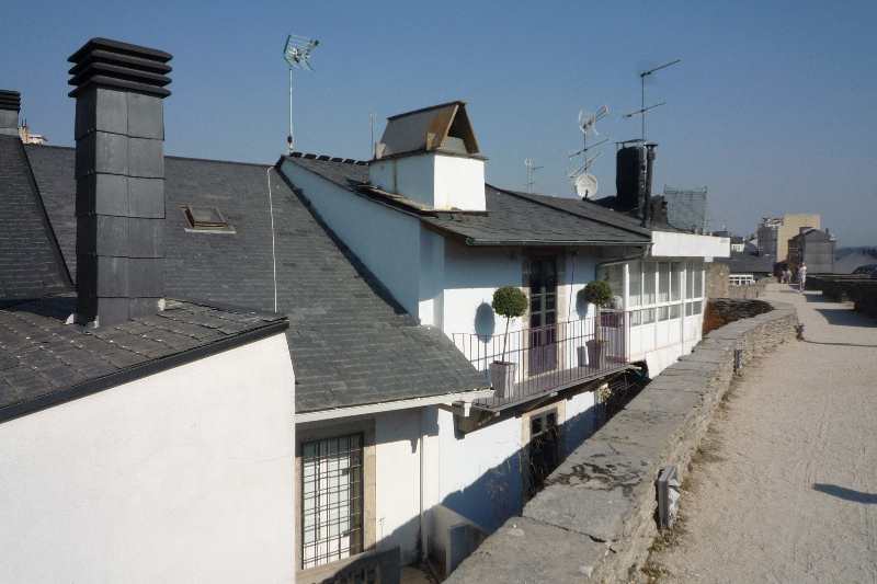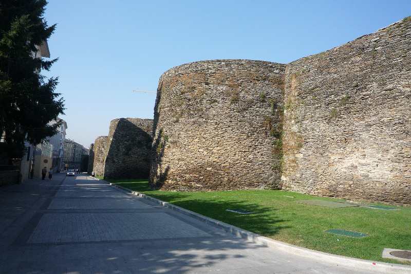 Wir laufen der Stadtmauer entlang und können auf Lugo herunterschauen. Auf Grund der Einzigartigkeit dieser tausenjährigen Befestungsanlage, sowie ihres guten Erhaltungszustandes wurde sie als einzige römische Stadtmauer zum Weltkulturerbe erhoben.