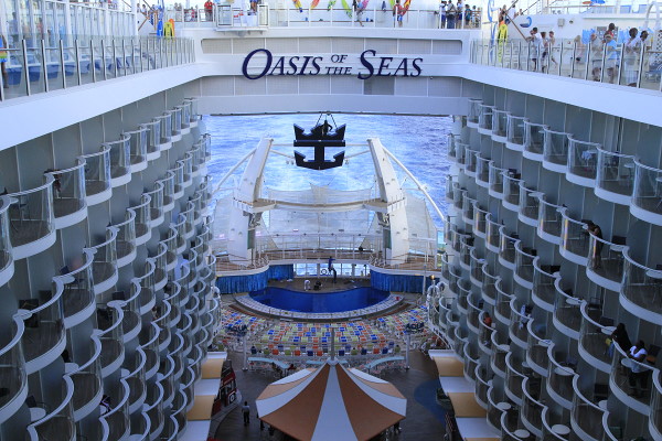 Am nächsten Tag war es soweit: Wir entdecken schon vom Hotel aus die Oasis of the Seas. Doch auf den ersten Blick hat sie mich wenig beeindruckt. Ich hatte sie mir größer vorgestellt. Lag aber vermutlich auch daran, dass wir zum einen schon viele Schiffe gesehen haben und zum anderen auch noch ein Schiff von Carnival daneben ankerte. Wir entschieden uns, statt mit dem Transfer mit dem Taxi zum Hafen zu fahren. Das ersparte uns viel Wartezeit und Rumhängerei. Wir checkten ein, was schnell ging, warteten schließlich noch eine Stunde und durften dann an Bord. Wir waren unter den ersten 100 für die 100. Kreuzfahrt mit der Oasis. ![]()