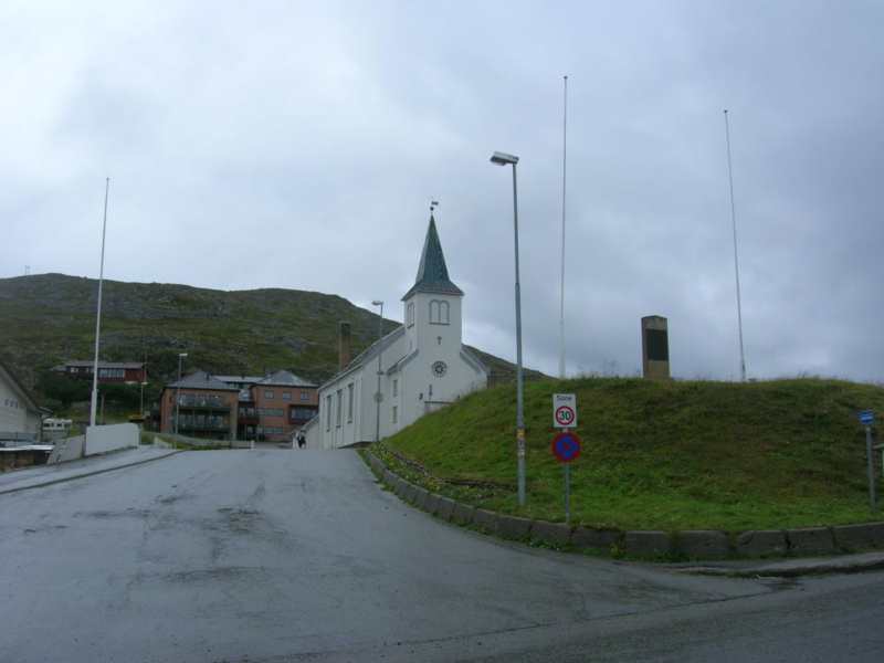 Das Städtchen Honningsvag wurde am Ende des 2. Weltkrieges von den Deutschen total niedergebrannt, wie auch die anderen Orte auf der Insel Mageroya. Nur die Kirche in Honningsvag (1884) wurde verschont.