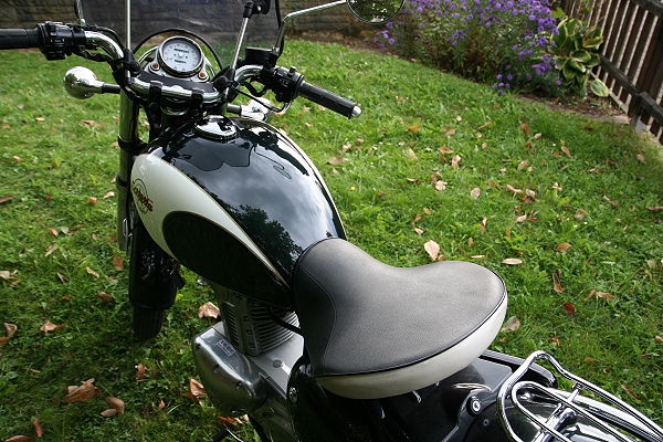 Diese Maschine fahren wir nur auf kurzen Strecken, denn sie hat nur einen Sattel und viel Gepäck läßt sich nicht verstauen, aber sie sieht unheimlich gut aus ![]()