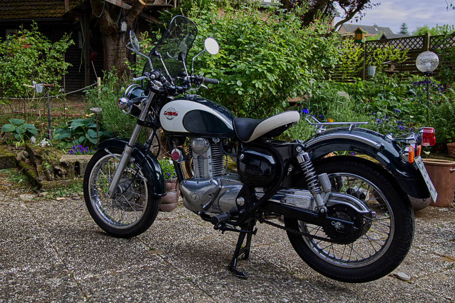 Die Kawasaki Estrella habe ich von Friedrich geschenkt bekommen, als ich aufgehört habe zu rauchen. Nur hatte ich da noch gar keinen Motorradführerschein ![]()