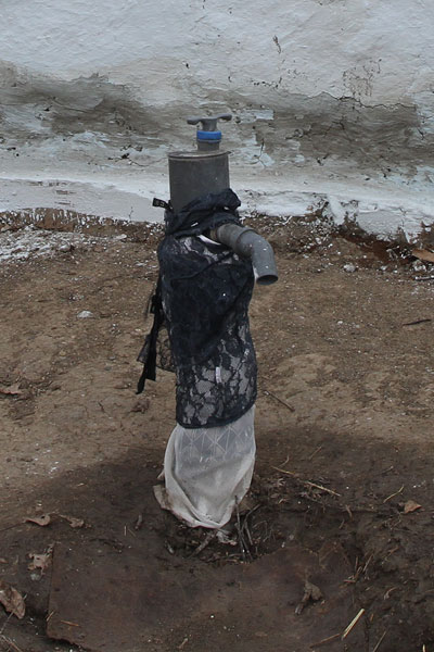Nun fuhren wir ein Stückchen weiter, dort, wo die ca. 13 Familien in Armut leben. Ein wenig haben sich die Lebensbedingungen geändert, denn Hilfe für Kinder hat für viele Familien Brunnen bauen lassen, so dass sie jetzt ein Stück Land bewirtschaften können. Außerdem haben wir Baumaterialien gekauft, so dass sich die Wohnqualität durch Anbauten und Erweiterungen ein wenig verbessern wird. Die Grundstücke werden eingezäunt und man beginnt Hühner und sogar Schweine zu halten.