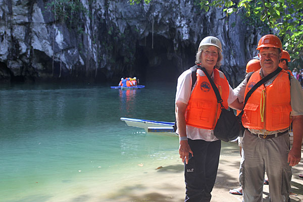 von Manila aus sind wir in 55 Minuten mit Cebu Pacific nach Puerto Princesa auf der Insel Palawan geflogen. Bis auf die Story mit Friedrichs Motorradhelm, den wir nicht als Handgepäck mitnehmen durften, verlief der Flug wie schon gehabt, enge Bestuhlung, nette Crew, Verlosung an Board, Getränke und Essen sind kostenpflichtig.