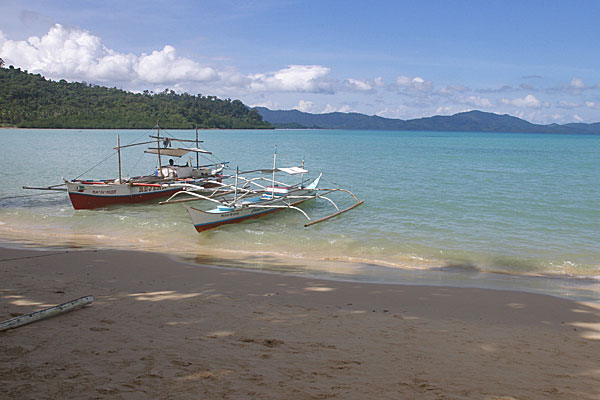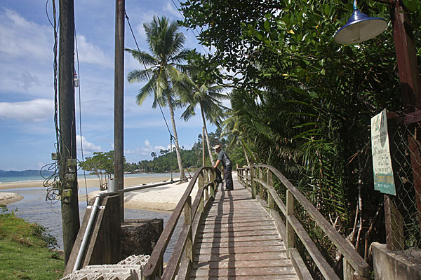 Wenn man über diese Brücke geht, dann kommt man ins kleine Fischerdorf Port Barton und an den nächsten Strand. Port Barton besteht eigentlich nur aus einer Handvoll Straßen mit ein paar Häuschen (Bambushütten), wenige Hotels (na ja Hotels kann man eigentlich nicht sagen...), kleinen Lädchen, einer Tankstelle und ich glaube, das war´s. Das ganze Leben spielt sich eigentlich im Freien ab.