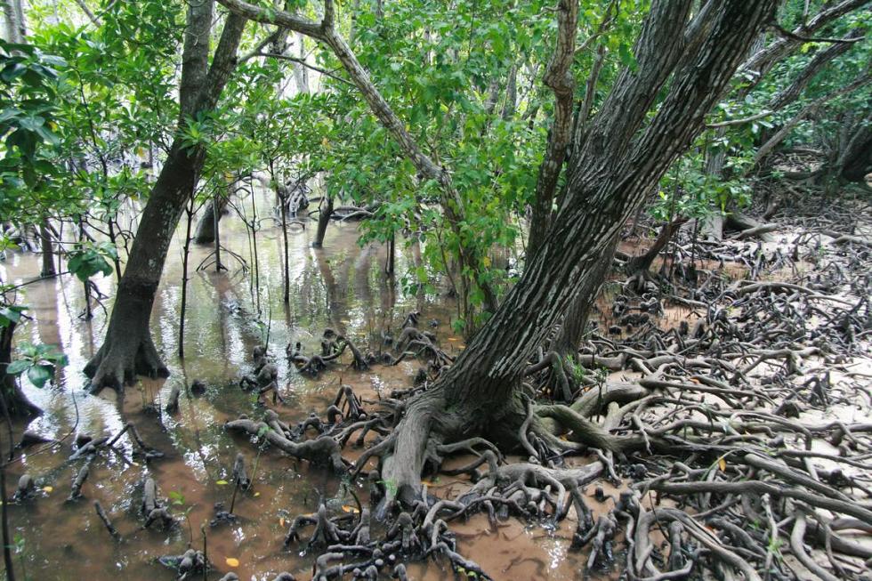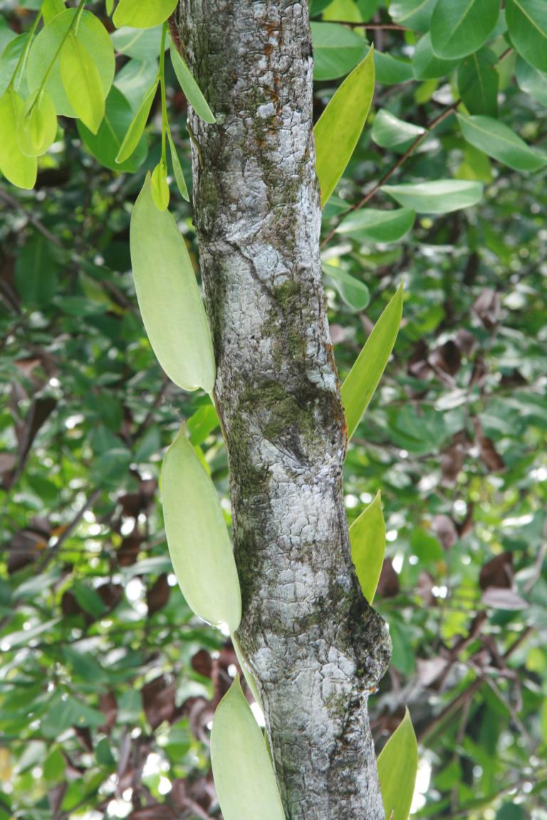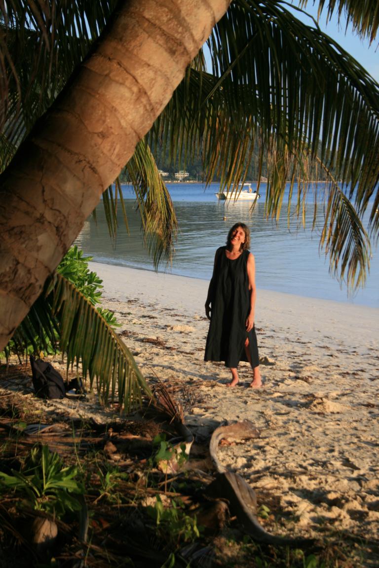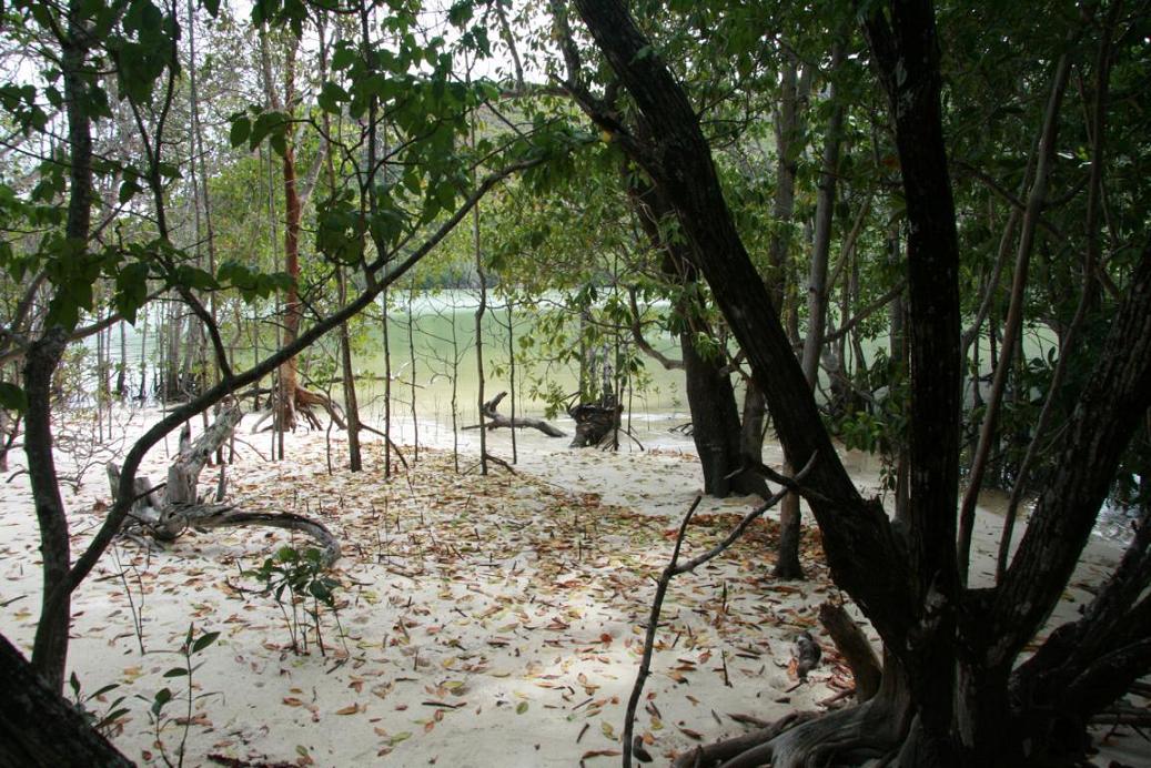 Aber es soll dann noch einen kleinen Gang über die Insel geben, den Okke und ich mitgehen. Wir kommen zu Mangroven, sehen Vanillepflanzen (gehören zur Familie der Orchideen), bekommen ein Stück von Zimtbaum, Infos über Dachbau aus Palmenblättern und die Auswirkungen des Tsunamis hier. Schließlich erreichen wir einen Strand, von dem wir mit dem Boot wieder abgeholt werden.