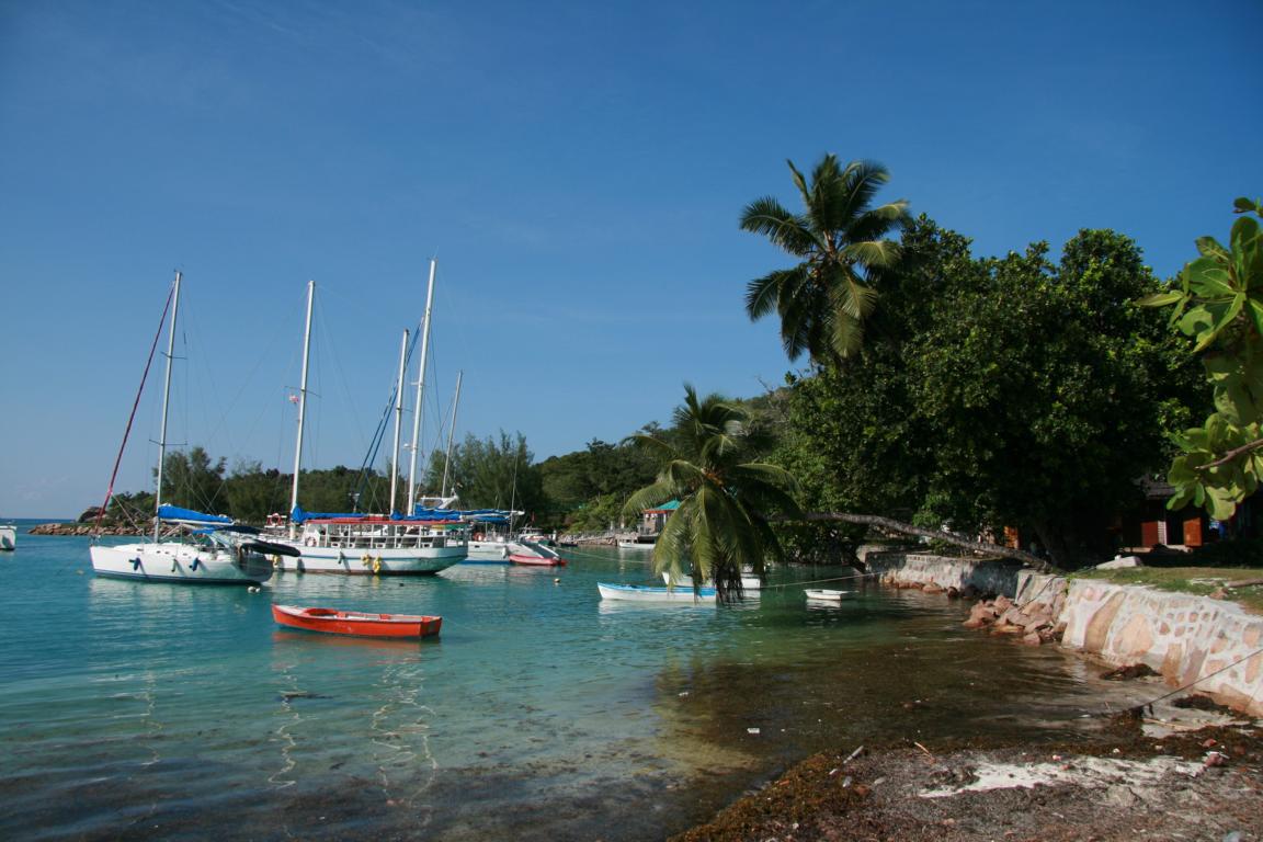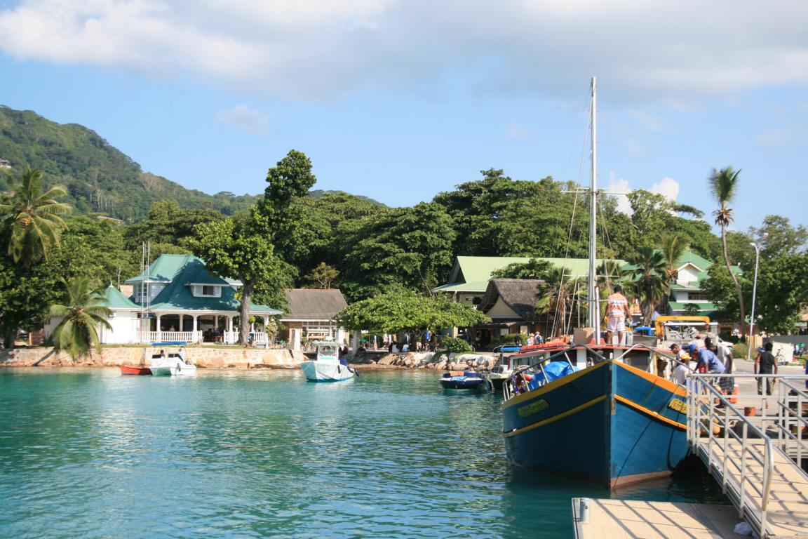 Die Überfahrt nach La Digue dauert nur 15 Minuten. Schon die Umgebung am Hafen sieht nett aus. -
