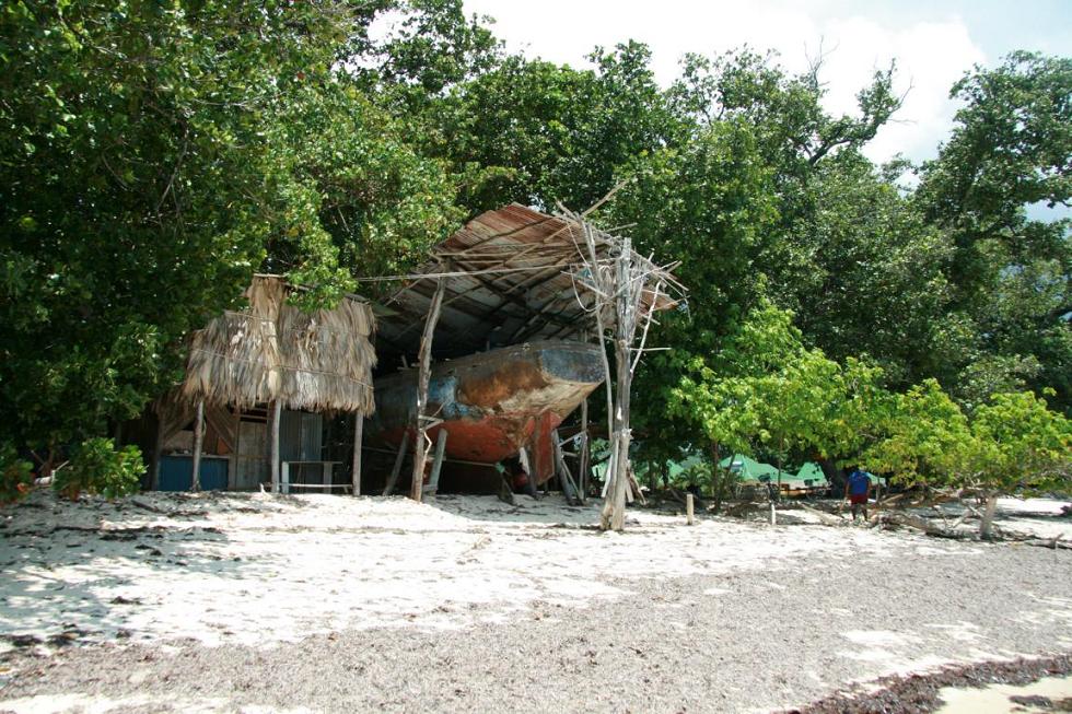 Jan holt erst einmal was zum Trinken, ich packe aus, Okke läuft zum Wasser. Später gehen Jan und Okke mal auf das Korallenriff, ich schaue mir den Strand mal so an. -