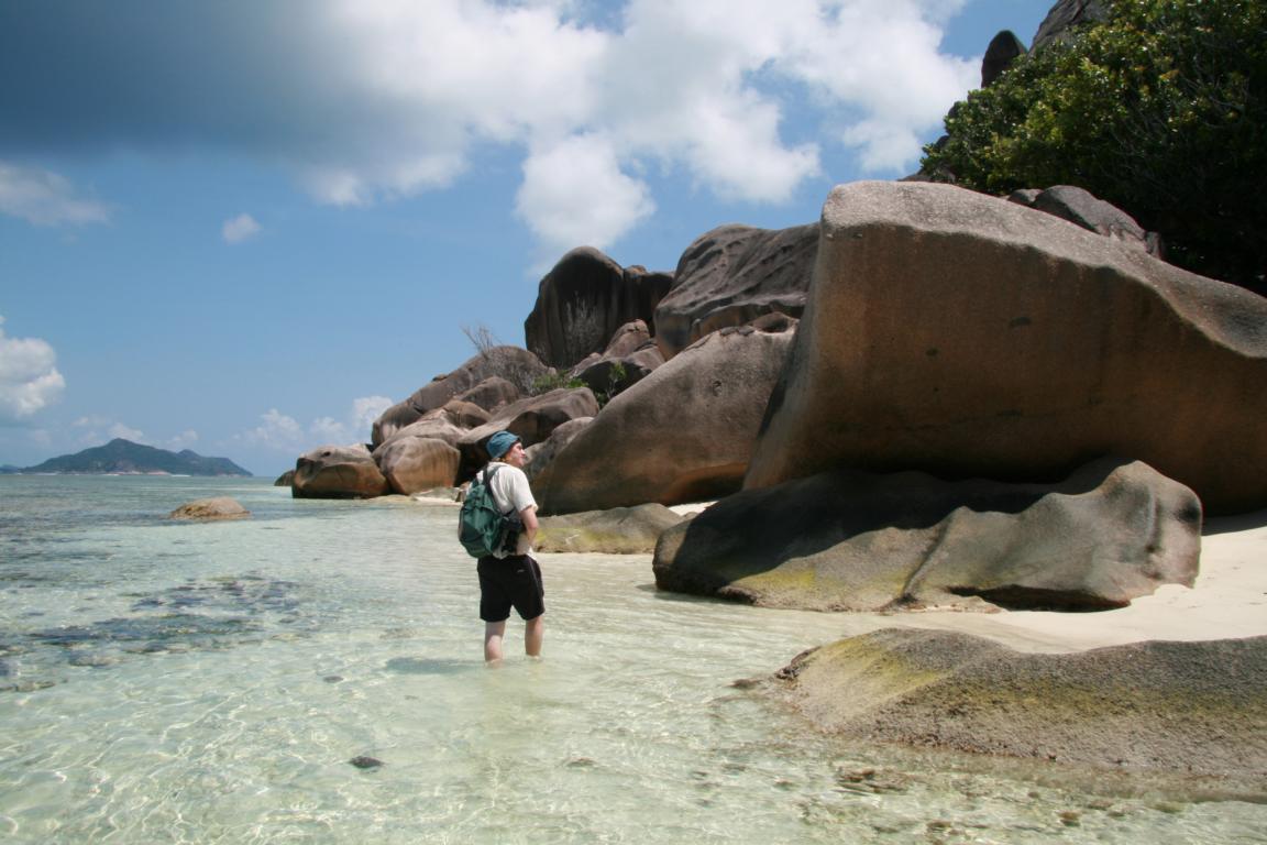 wir sind jetzt auf La Digue und haben kein Internet, also sitzen wir heute im Internetcafe, von denen es hier zwei gibt und eines hat heute sogar noch auf. Es ist herrlich hier. Wir haben traumhafte Bilder gestern an dem Strand gemacht, von dem wohl die Bilder in die Welt geschickt werden, bei denen man an Seychellen denkt. Unsere Pension ist nicht ganz so nett wie die erste, aber ok. Hier haben wir Halbpension. Abends gibt es ein kreolisches Buffett, 2 Fischgerichte / gut dass wir Fisch lieben. Leider auch viele Graeten, die wir nicht lieben. Die Pension liegt ausserhalb der Reichweite des Internetempfanges und wir haben noch keine Stelle gefunden, wo wir ihn vielleicht mit den Bezahlkarten bekommen. Also muss ich Euch mit den Bildern vertroesten, kann aber sagen, da kommen noch Hammer! Auch die Unterwasserkamera ist weiter in Einsatz gewesen. Einziger Nachteil hier ist, dass es Muecken, und noch schlimmer, Strandflöhe gibt. Letztere bemerkt man erst, wenn es zu spät ist. Und deren Stiche nerven schlimmer als die von Mücken. Ansonsten bewegt man sich mit Fahrrad oder zu Fuss. Alles ist sehr besinnlich und einfach nur HERRLICH! Gruss erst einmal fuer heute -