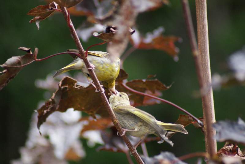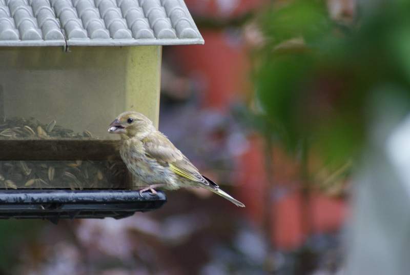 Von meinem Wintergarten aus sehe ich die hübschesten Szenen, von denen z.B. die Fütterung eines Grünling Jungen ganz entzückend war.
