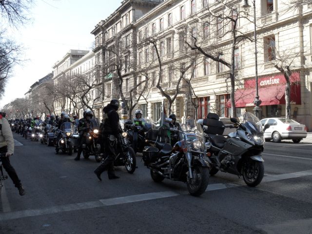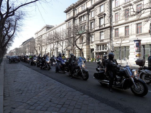 ein Motorradkorso auf dem Weltkulturerbe , der Andrássy út statt.