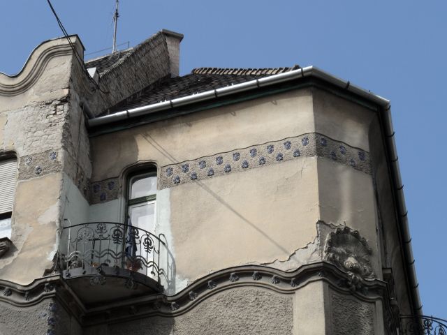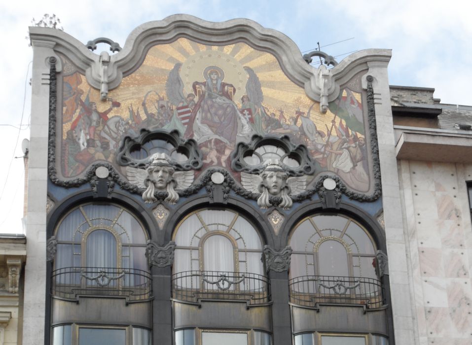 besondere Gebäude :Das Bankhaus Török mit bunter Glas Giebelmosaik- 1906