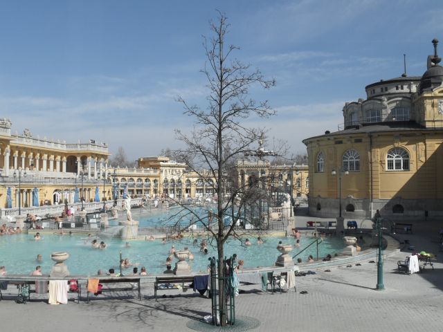 Die palastartige Anlage des Széchenyi Bades verfügt über 15 Becken